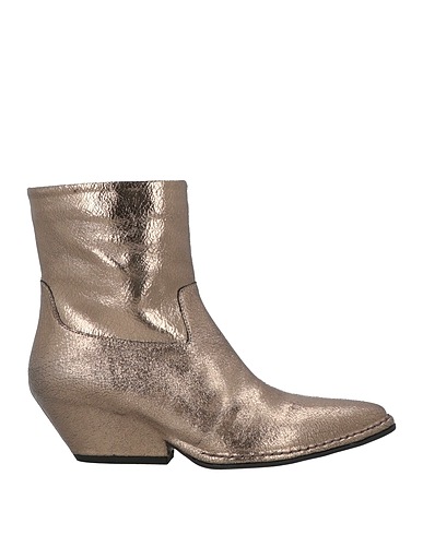 cowboy ankle boots, pebbled-leather, metallic, solid color, no appliqués, leather lining, zipper fastening, pointed toe, cuban heel, rubber sole, contains non-textile parts of animal origin