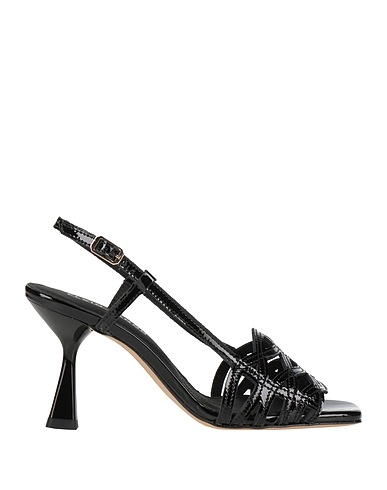 patent leather, no appliqués, solid color, leather lining, buckle-fastening ankle strap, round toe, spool heel, rubber sole, contains non-textile parts of animal origin, ankle strap sandals
