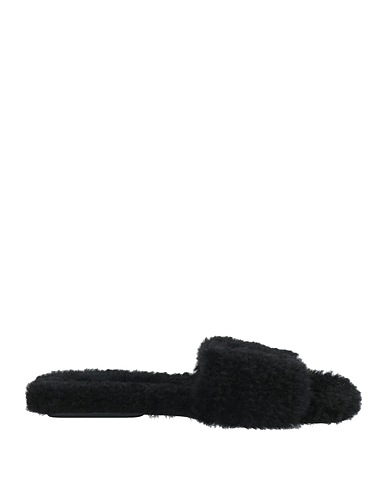 slide sandals, plush fabric, solid color, brand logo, embellished, plush fabric inner, square toe, flat, rubber sole, large sized
