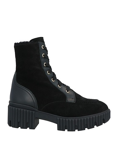 padded ankle boots, suede, solid color, no appliqués, plush fabric inner, lace-up, round toe, square heel, rubber cleated sole, contains non-textile parts of animal origin