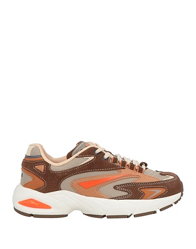 low-top sneakers, suede, shell, brand logo, two-tone, technical fabric inner, lace-up, round toe, flat, rubber cleated sole, contains non-textile parts of animal origin