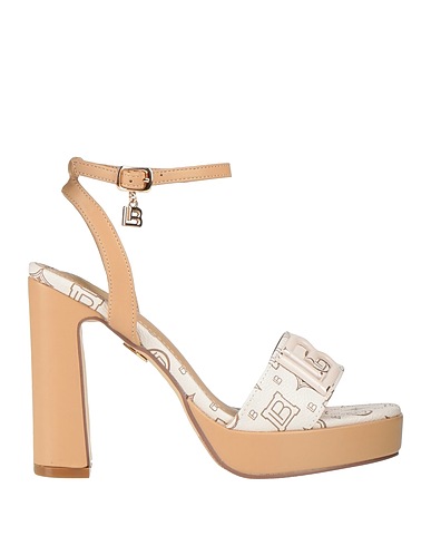 ankle strap sandals, coated fabric, logo-print, brand logo, rubber lining, buckle-fastening ankle strap, square toe, square heel, rubber sole