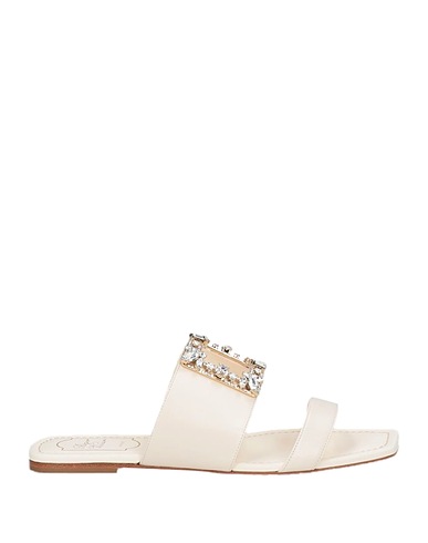 sandals, leather, solid color with appliqués, crystals, leather lining, square toe, flat, leather sole, contains non-textile parts of animal origin