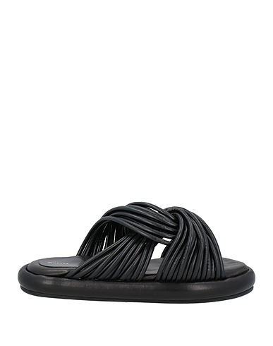sandals, coated fabric, solid color, no appliqués, lined interior, round toe, flat, rubber sole, contains non-textile parts of animal origin, small sized