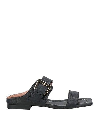sandals, pebbled-leather, solid color, no appliqués, leather lining, square toe, flat, leather sole, contains non-textile parts of animal origin