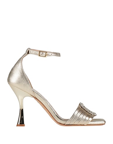 ankle strap sandals, leather, metallic, solid color with appliqués, crystals, leather lining, buckle-fastening ankle strap, square toe, spool heel, leather sole, contains non-textile parts of animal origin, go extra glam with chic party accessories for your next event or night out