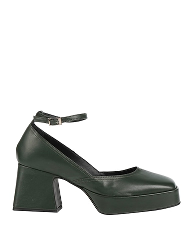 pumps, leather, solid color, no appliqués, leather lining, buckle-fastening ankle strap, square toe, square heel, rubber sole, contains non-textile parts of animal origin