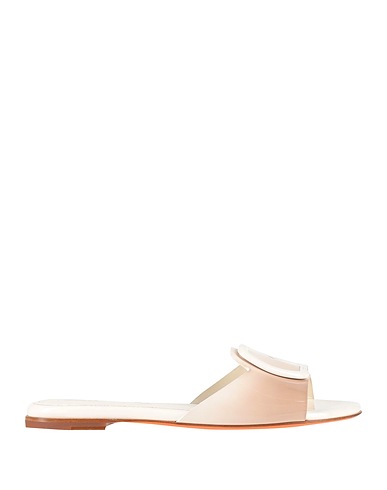slide sandals, glossed-leather, solid color, no appliqués, leather lining, round toe, flat, leather/rubber sole, contains non-textile parts of animal origin, large sized