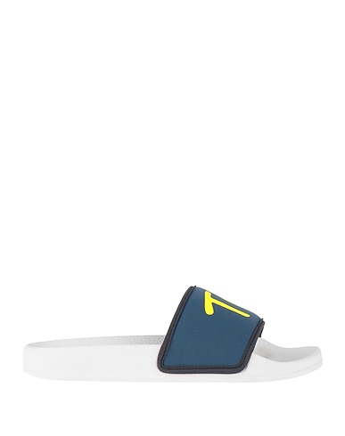 pool slides, scuba, solid color with print, brand logo, rubber lining, round toe, flat, rubber cleated sole