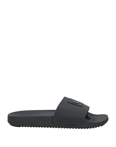pool slides, pebbled-leather, solid color with appliqués, brand logo, leather lining, round toe, flat, rubber cleated sole, contains non-textile parts of animal origin