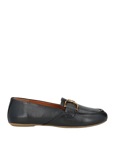 loafers, leather, gold-tone, solid color, embellished, leather lining, round toe, flat, rubber cleated sole, contains non-textile parts of animal origin