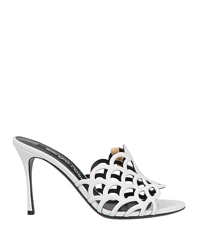 slide sandals, leather, solid color, no appliqués, leather lining, round toe, spike heel, leather sole, contains non-textile parts of animal origin