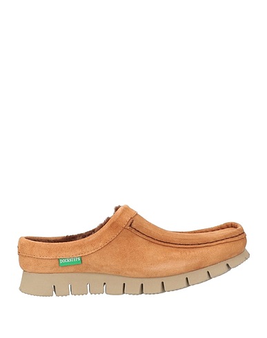 mules, suede, solid color, brand logo, plush fabric inner, square toe, flat, rubber cleated sole, contains non-textile parts of animal origin