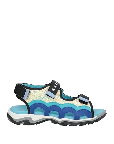 technical sandals, leather, multicolor, brand logo, glittered, leather lining, velcro fastening, round toe, flat, rubber cleated sole, contains non-textile parts of animal origin