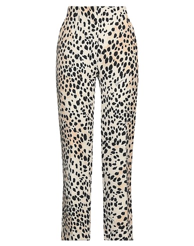 straight-leg pants, satin, stretchy fabric, leopard-print, brand logo, high waisted, regular fit, zipper fastening, hook fastenings, multipockets, hand wash or dry clean, do not bleach, do not tumble dry