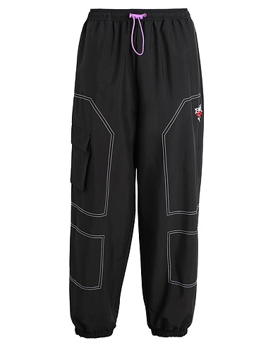 shell, embroidered, brand logo, solid color with appliqués, high waisted, elasticized waist, regular fit, drawstring fastening, elasticated hem, multipockets, lifestyle, machine wash, do not bleach, do not tumble dry, cargo pants
