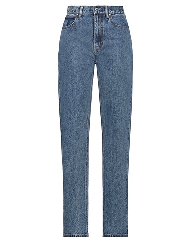 denim, faded, crystals, solid color with appliqués, medium wash, high waisted, regular fit, zipper fastening, 1 button, multipockets, dry clean, do not bleach, do not tumble dry, straight-leg jeans, this brand runs large