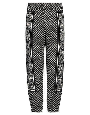 casual pants, woven, no appliqués, logo-print, paisley-print, high waisted, elasticized waist, tapered leg, relaxed fit, multipockets, machine wash or dry clean, do not bleach, do not tumble dry