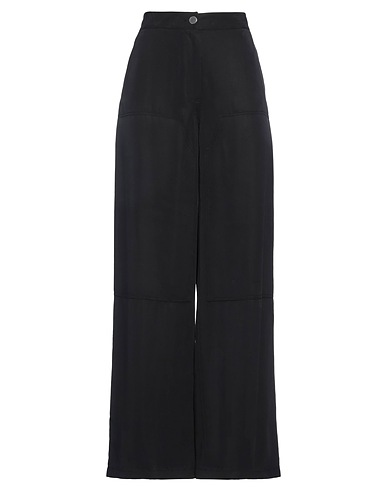 wide-leg pants, twill, solid color, no appliqués, high waisted, relaxed fit, 1 button, zipper fastening, multipockets, dry clean, do not bleach, do not tumble dry