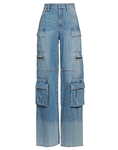 cargo jeans, denim, faded, solid color, no appliqués, medium wash, high waisted, relaxed fit, 1 button, zipper fastening, multipockets, machine wash, do not bleach, do not tumble dry