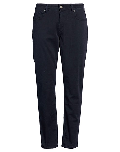 tapered jeans, denim, stretchy fabric, solid color, leather trims, brand logo, colored wash, mid rise, regular fit, zipper fastening, five pockets, machine wash or dry clean, do not bleach, do not tumble dry, contains non-textile parts of animal origin