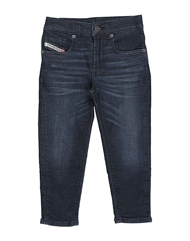 model: d-lucas-j, denim-jersey, stretchy fabric, solid color, brand logo, dark wash, belt loops, 1 button, zipper fastening, five pockets, machine wash, do not bleach, do not tumble dry