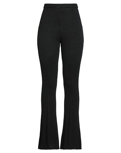 flared pants, knitted, lightweight knit, solid color, no appliqués, high waisted, regular fit, hand wash or dry clean, do not bleach, do not tumble dry, do not iron