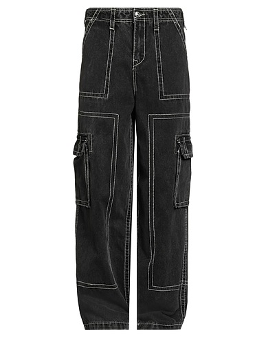 cargo jeans, denim, faded, solid color with appliqués, embroidered, brand logo, colored wash, high waisted, belt loops, regular fit, zipper fastening, 1 button, five pockets, machine wash, do not bleach, tumble dry