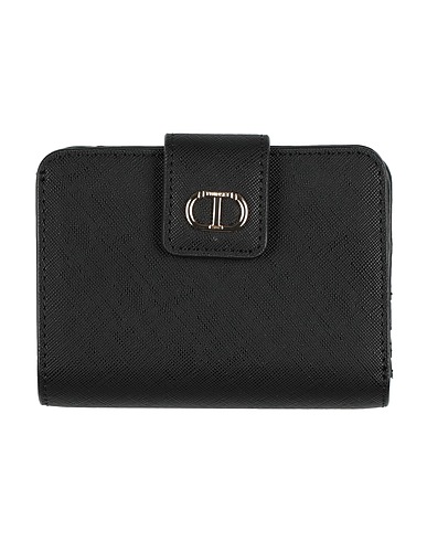 wallet, synthetic material, solid color, brand logo, internal compartments, snap fastenings, external pocket with zip