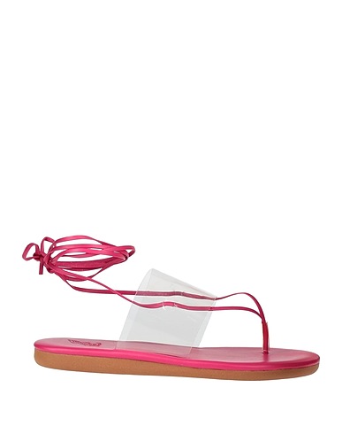 thong sandals, leather, two-tone, no appliqués, leather lining, ties at ankle, round toe, flat, rubber cleated sole, contains non-textile parts of animal origin