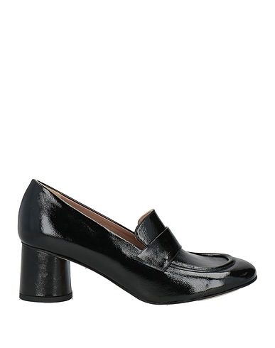 loafers, patent leather, solid color, no appliqués, leather lining, round toe, geometric heel, covered heel, leather sole, contains non-textile parts of animal origin