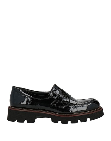 chunky loafers, patent leather, solid color, no appliqués, leather lining, round toe, square heel, rubber cleated sole, contains non-textile parts of animal origin