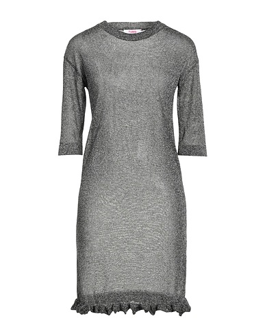 knitted, lamé, lightweight knit, brand logo, solid color, crewneck, 3/4 length sleeves, no pockets, machine wash or dry clean, do not tumble dry, do not bleach, dress