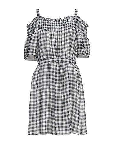 neckline, short sleeves, self-tie closure, no pockets, do not wash, do not tumble dry, do not bleach, flared dress