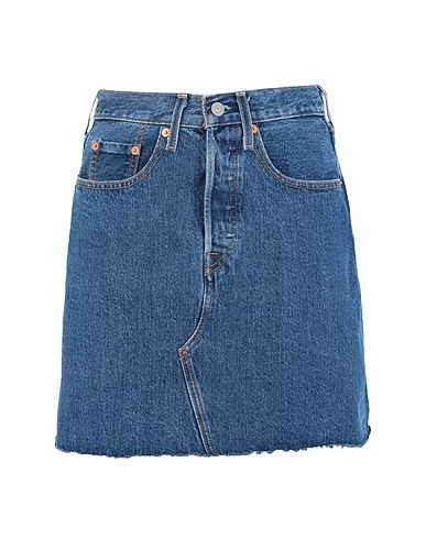 flared skirt, denim, solid color, brand logo, dark wash, mid rise, button fastenings, multipockets, this brand runs small
