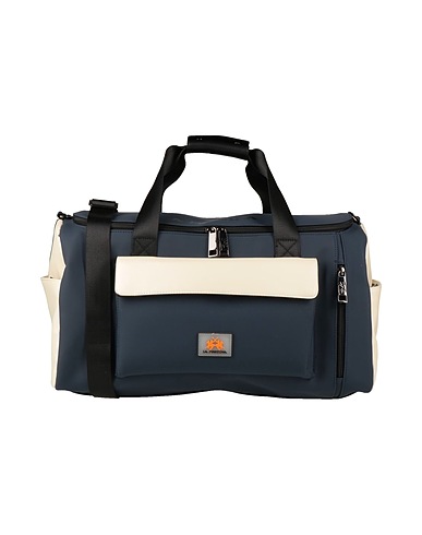 coated fabric, brand logo, two-tone, fully lined, zipper closure, external pockets, internal pockets, double handle, detachable shoulder strap
