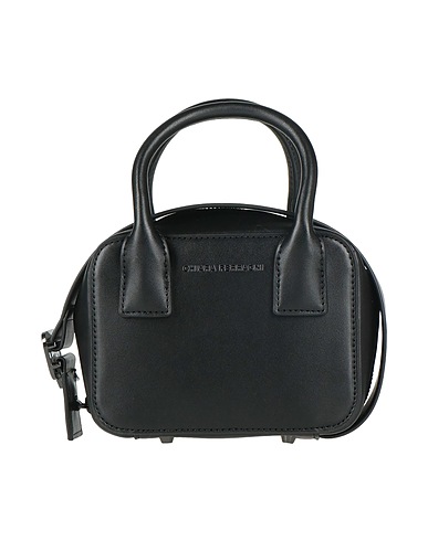 bowler bag, synthetic material, solid color, brand logo, zipper fastening, fully lined, double handle, detachable shoulder strap, feet at base, small size