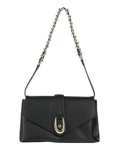 flap bag, synthetic material, solid color with appliqués, brand logo, embellished, fully lined, bag handle, large size