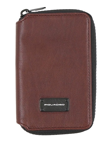 leather, brand logo, solid color, leather backing, zipper closure, card slots, contains non-textile parts of animal origin