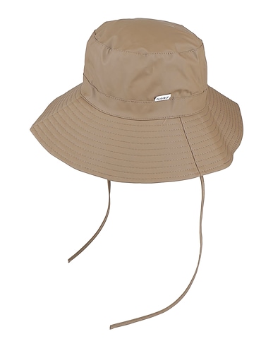 bucket hat, shell, rubberized, solid color, brand logo, wide brim, lace-up, fully lined