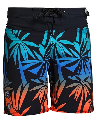 techno fabric, brand logo, hawaiian design, unlined, self-tie closure, single pocket