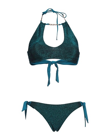 synthetic jersey, lamé, no appliqués, solid color, sleeveless, self-tie closure, fully lined, no pockets, removable padding, no underwire bra, stretch, 2-piece set
