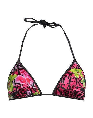 triangle bikini top, synthetic jersey, floral-print, logo-print, no appliqués, tie fastening, stretch