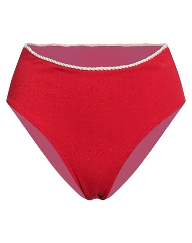 synthetic jersey, jacquard, embellished, brand logo, solid color with appliqués, stretch, hand wash, do not bleach, do not tumble dry, do not iron, high-waisted bikini bottoms