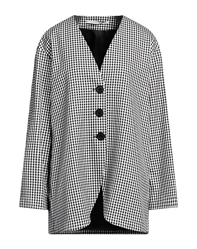cool wool, no appliqués, checked, v-neck, long sleeves, fully lined, multipockets, stretch, dry clean, do not bleach, do not tumble dry, jacket
