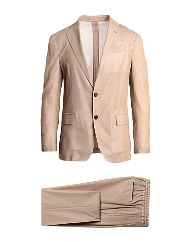 single-breasted suit, jersey, solid color, embellished, lapel collar, long sleeves, partially lined, zipper fastening, button fastenings, multipockets, high waisted, elasticized waist, dry clean, do not bleach, do not tumble dry