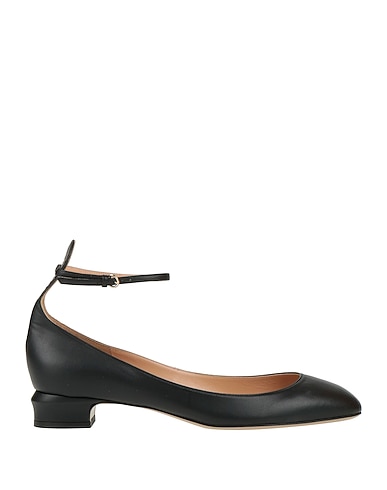 ballet flats, leather, plain colour, no appliqués, leather lining, buckle-fastening ankle strap, round toe, flat, leather sole, contains non-textile parts of animal origin