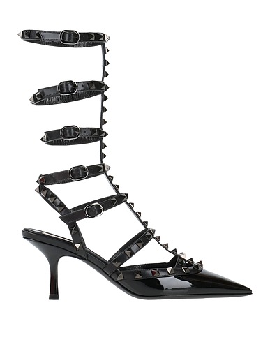 t-bar, leather, studs, plain colour with appliqués, leather lining, buckle fastening, pointed toe, spike heel, leather sole, contains non-textile parts of animal origin