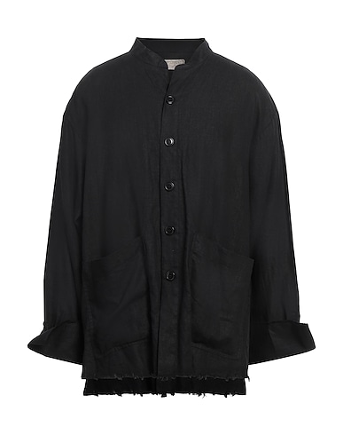 overshirt, woven, solid color, no appliqués, mandarin collar, long sleeves, button fastenings, multipockets, dry clean, do not bleach, do not tumble dry