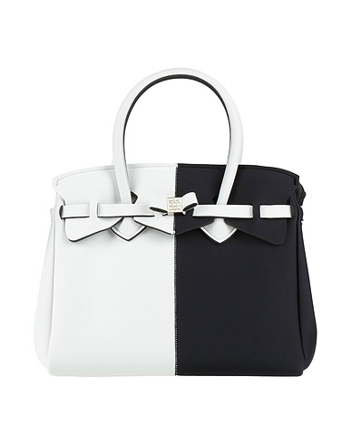 tote, scuba, two-tone, bow-detailed, brand logo, zipper fastening, unlined, double handle, large size